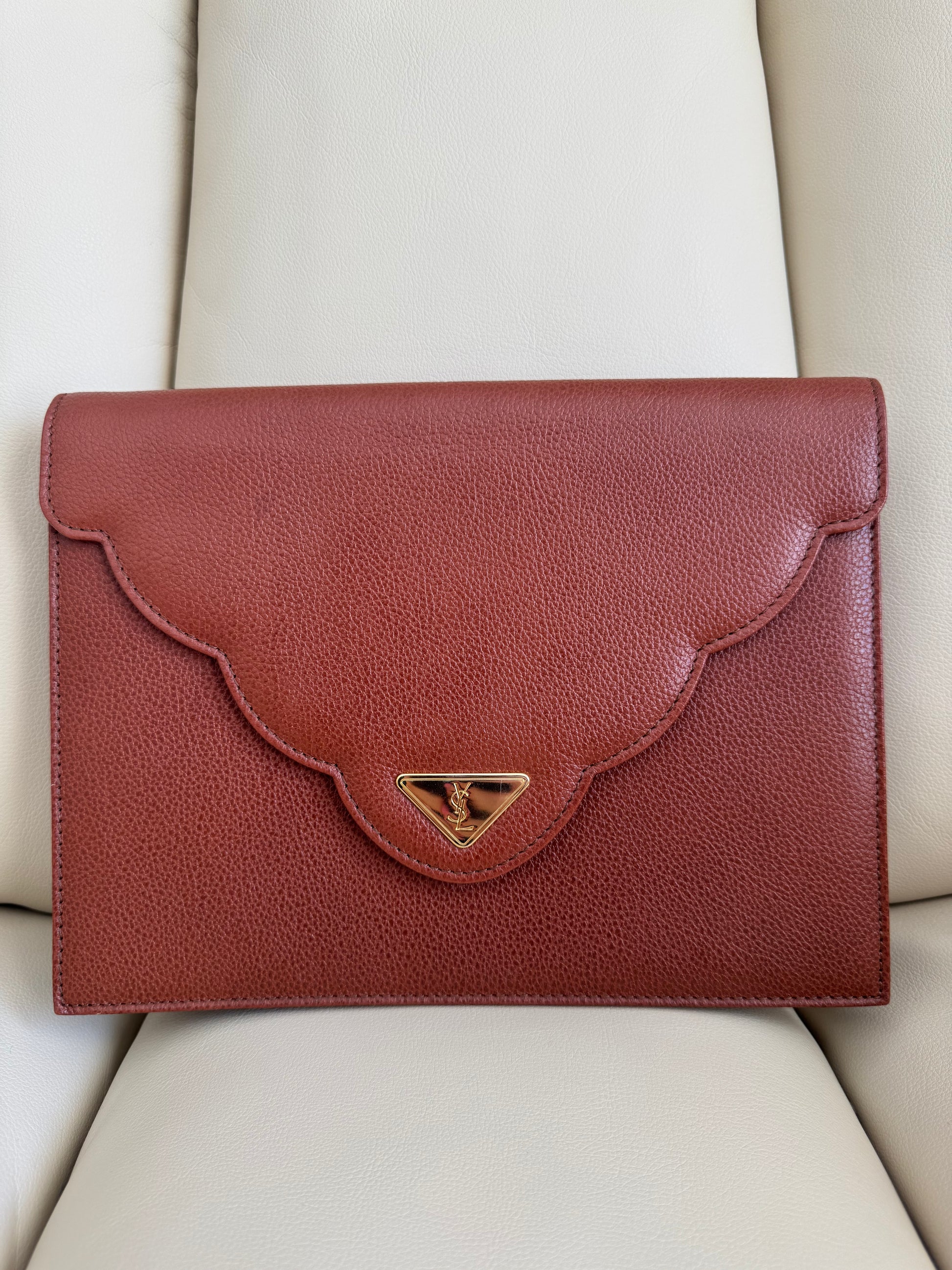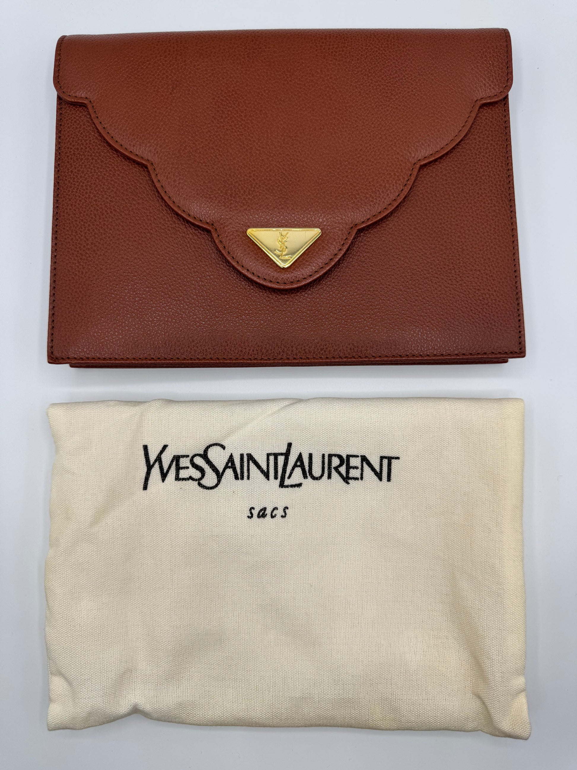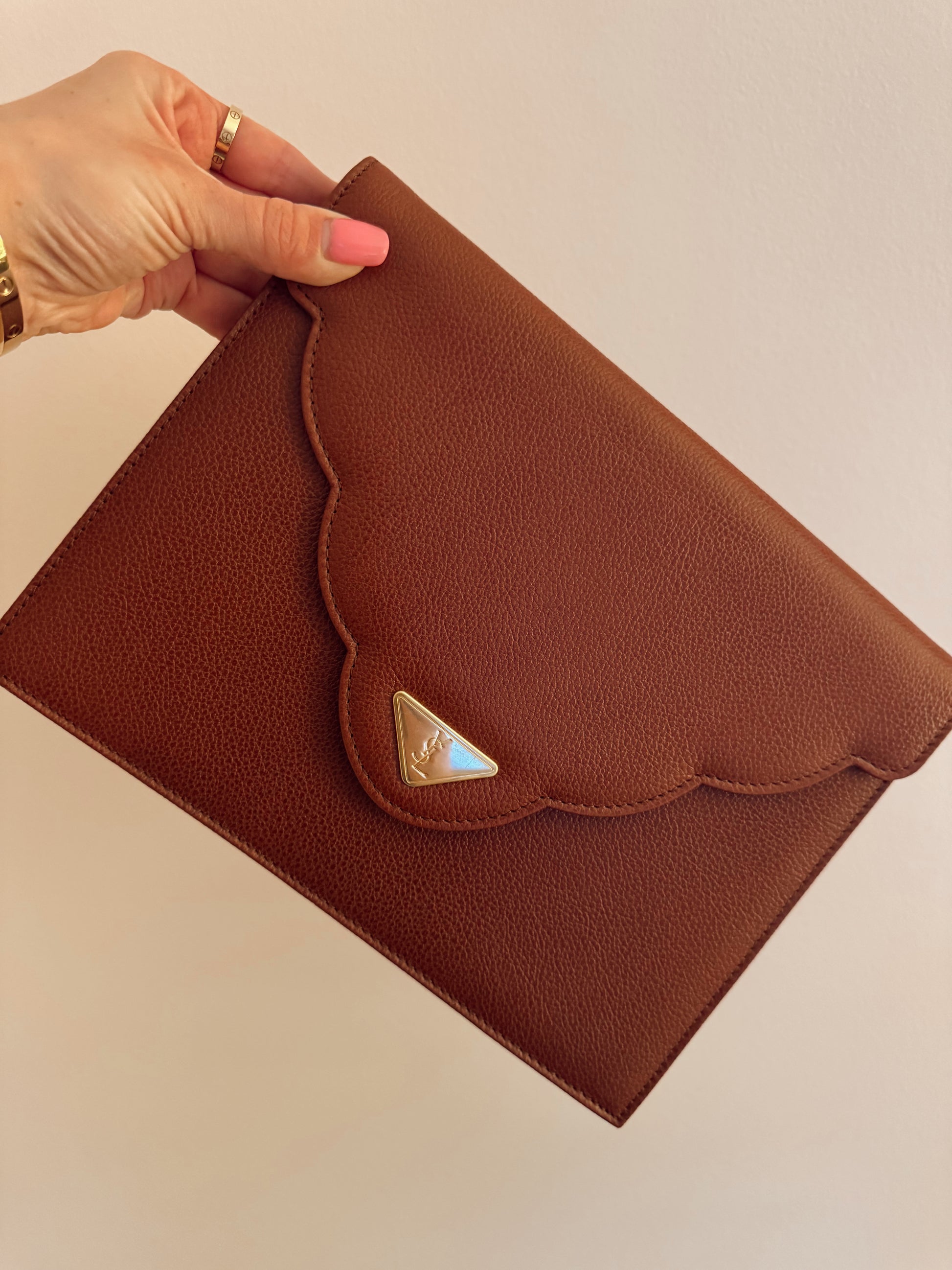 Vintage YSL Light Brown Leather Clutch